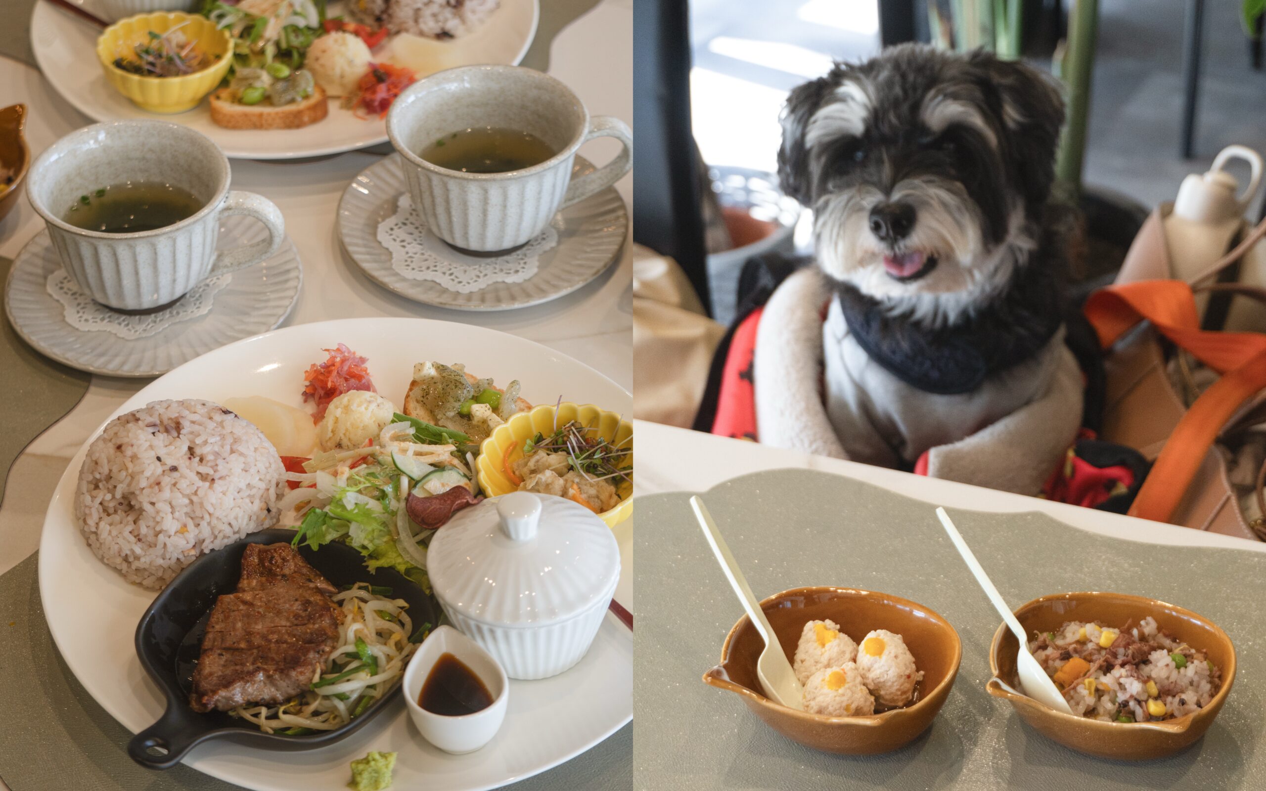 しかもここのレストランはわんこ用ご飯もあったよ♪わんこはカフェマットの上かバッグの中、床を歩かせる場合はマナーパンツが必須だったよ。
