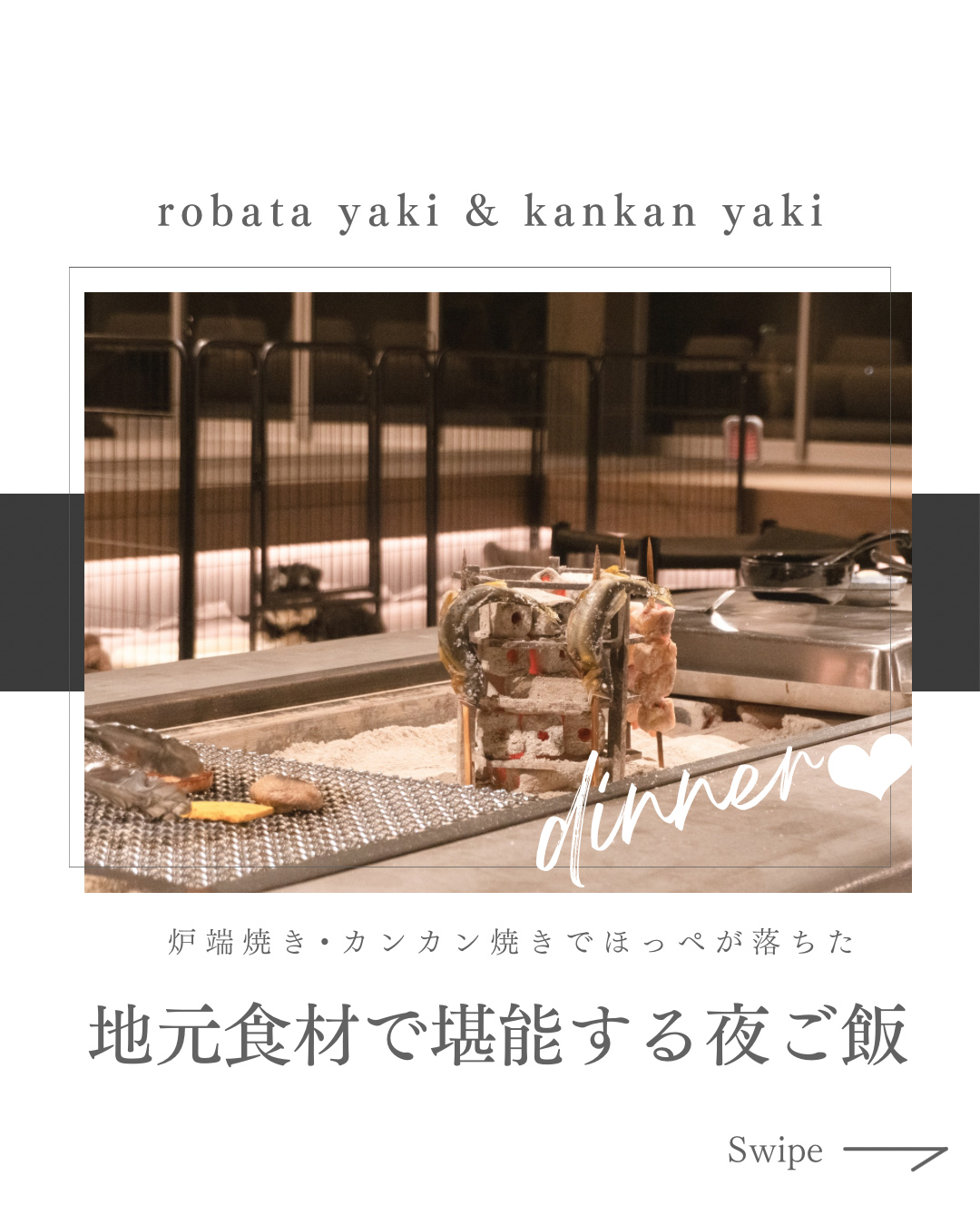 19:00 地元食材で炉端焼き&カンカン焼きを堪能